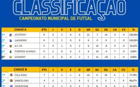 Tabela de Classificação Categoria Principal – Campeonato Municipal de Futsal